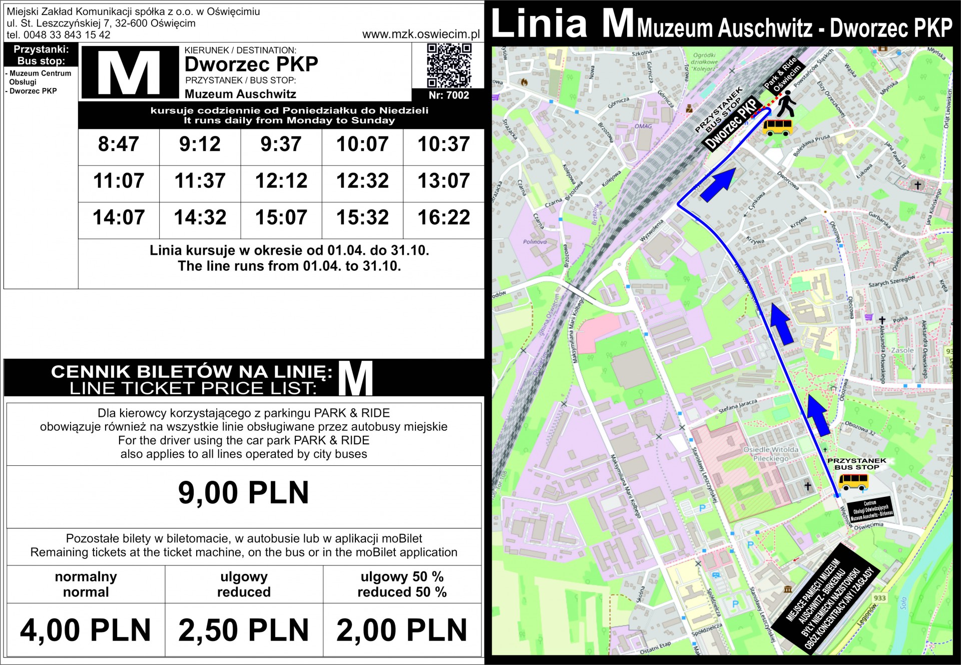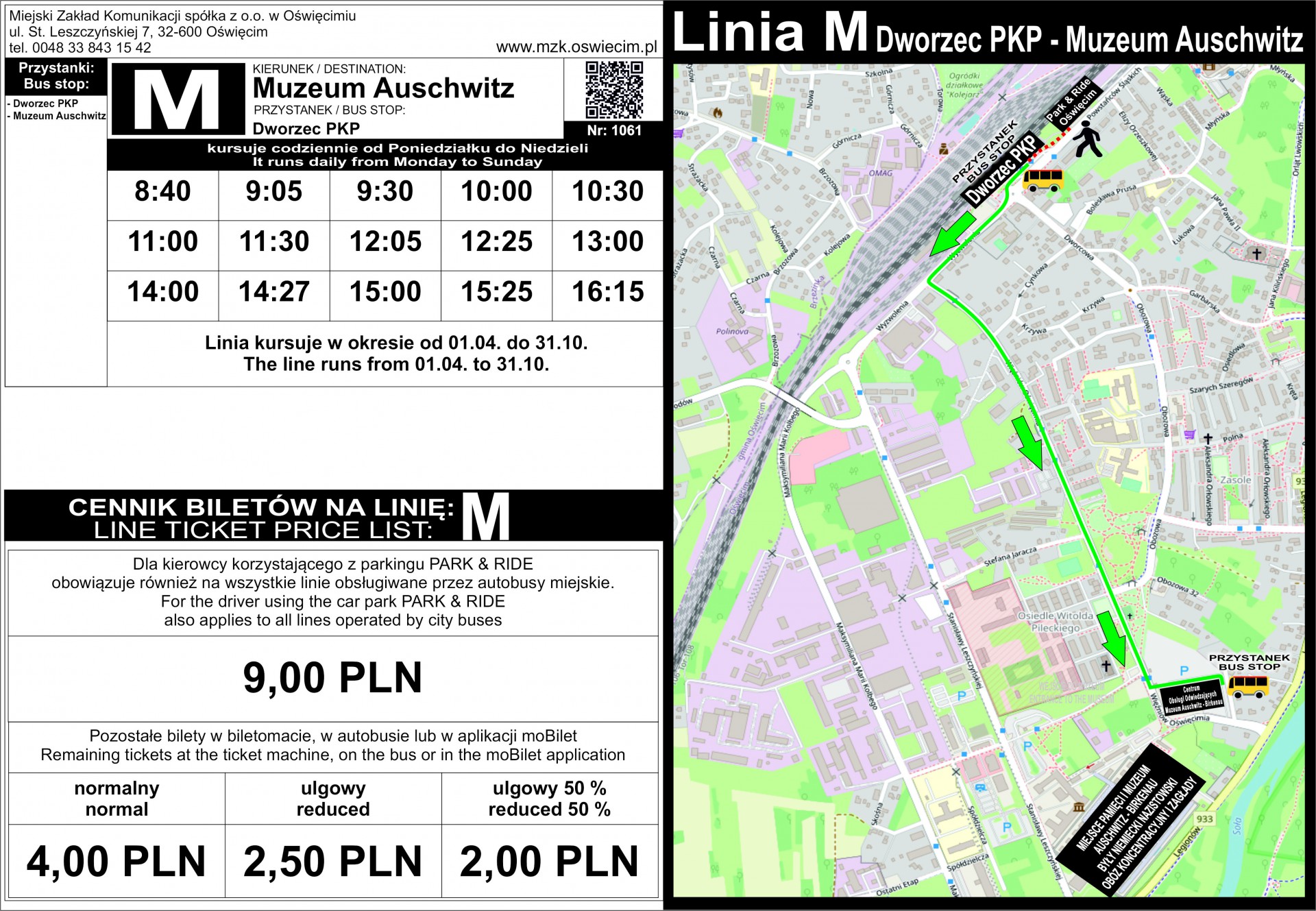 z Dworca PKP do MUZEUM Auschwitz Koszt biletu: 4 zł