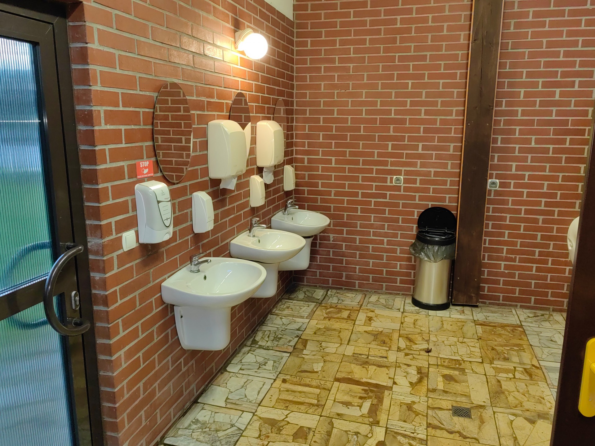 Zaplecze sanitarne dla gości znajduje się w wolnostojącym budynku zawierającym toalety oraz prysznice: damski, męski, dla niepełnosprawnych.