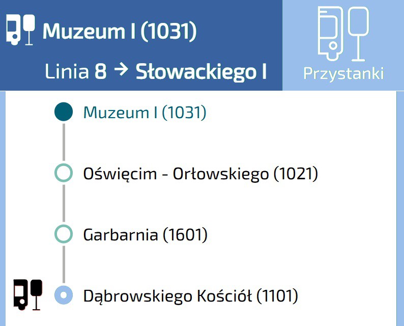 Z powyższych przystanków odjeżdżają autobusy Linii 8
