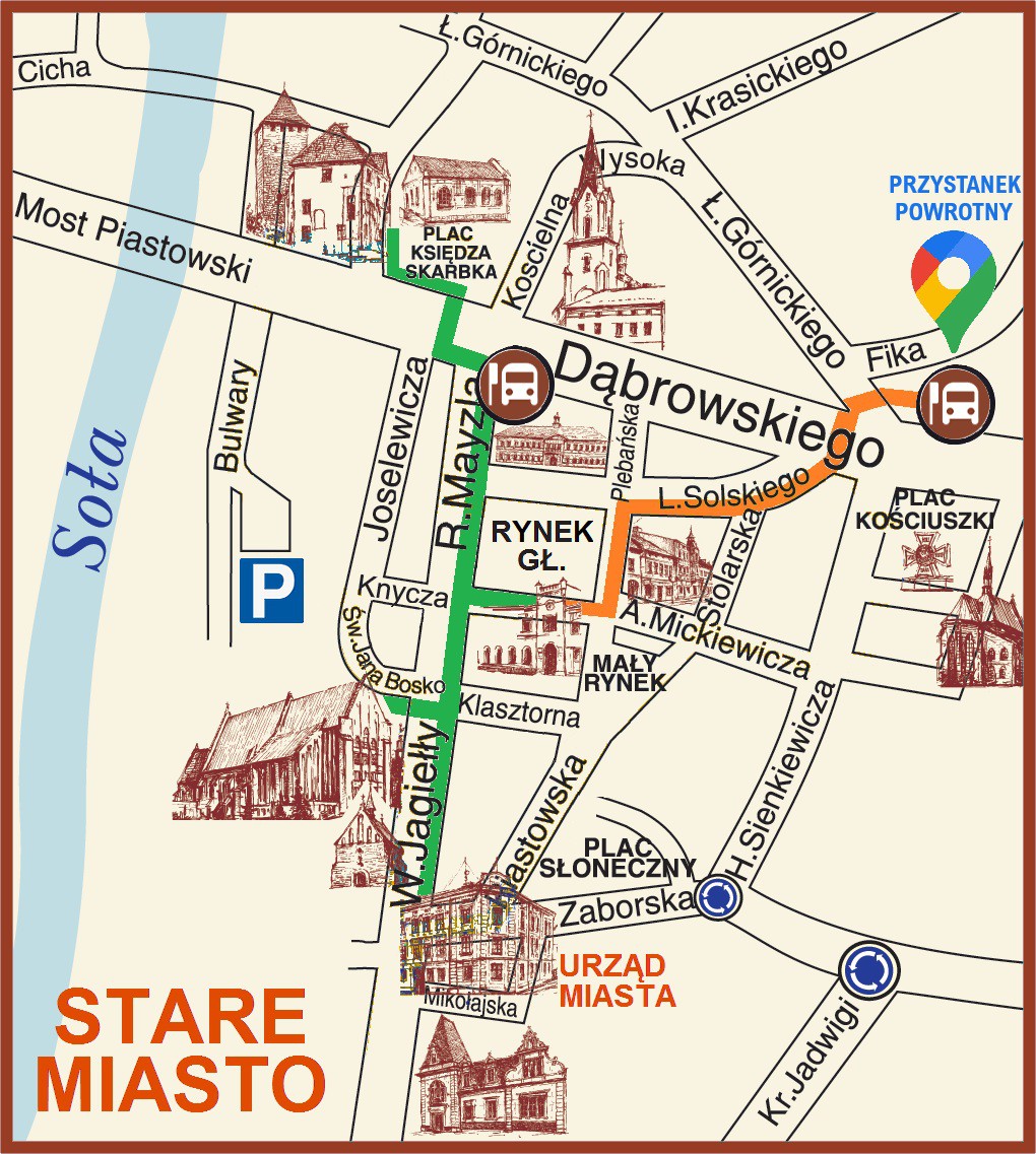 Obie linie autobusowe zatrzymują się w odległości 100 metrów od rynku