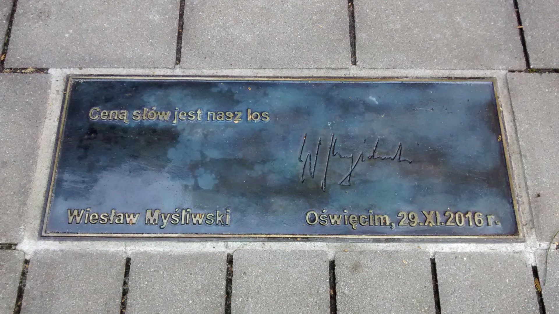 Odsłonił w Alei Pisarzy w Oświęcimiu płytę z cytatem z powieści "Widnokrąg".