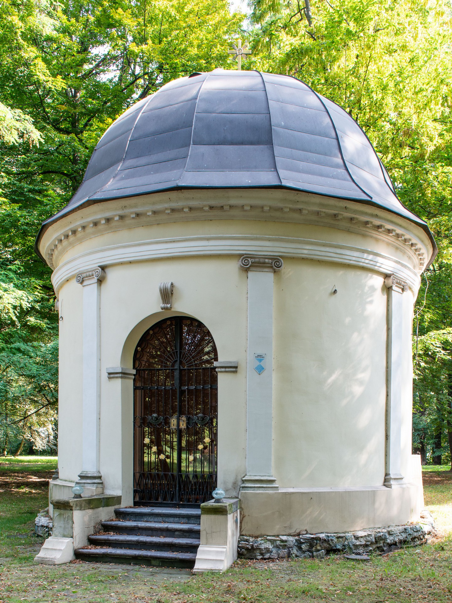 Dobrze zachowana część dawnego zespołu dworskiego pochodzącego z I poł. XIX wieku. Usytuowana we wschodniej części Dworów jest murowaną budowlą w stylu klasycystycznym. Otaczają ją jońskie pilastry podtrzymujące gzyms, na którym wspiera się kopuła zwieńczona metalowym krzyżem. Pierwotnie, w znajdującym się w środku kaplicy ołtarzu umieszczona była drewniana figura św. Barbary. Kilka lat temu zastąpiono ją figura Matki Bożej a św. Barbarę umieszczono z boku. Po obu stronach ołtarza wmurowane są w ściany epitafia. Jedna z płyt poświęcona jest pamięci majora Cezarego Hallera de Hallenburg, a druga - ostatniemu pochowanemu tu członkowi rodziny - Cezaremu Antoniemu Hallerowi (zmarł 8 lipca 1972 roku). Przy drzwiach wejściowych w posadzce, znajduje się wejście do krypty z trumnami pochowanych tutaj osób. Kaplicę otacza pozostałość po parku dworskim. Obiekt należy do Parafii Wniebowzięcia Najświętszej Marii Panny, a w niedziele i święta są tu odprawiane msze.